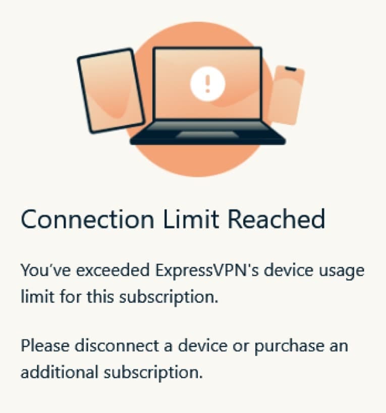 ExpressVPN has a connection limit of five devices.