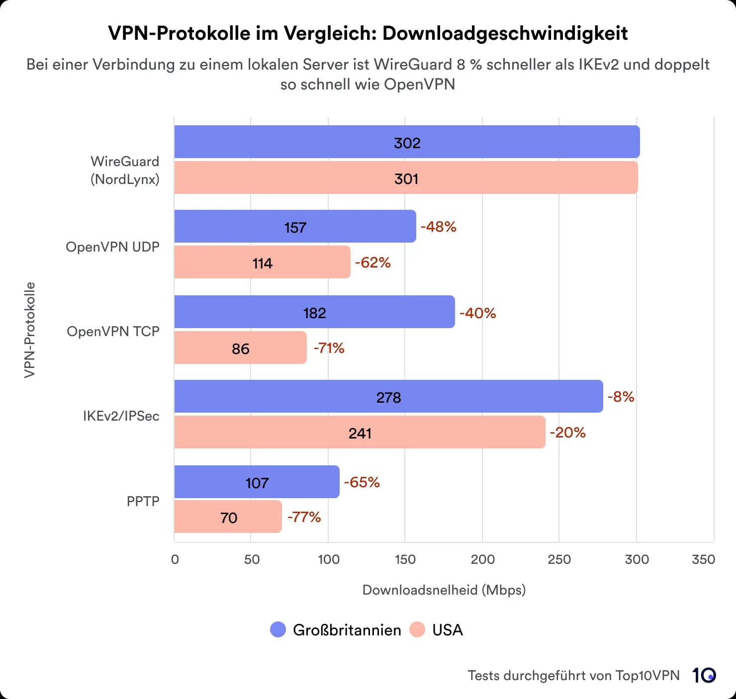 - WireGuard und IKEv2/IPSec sind die schnellsten Protokolle bei einer Vielzahl von VPN-Diensten und Plattformen.