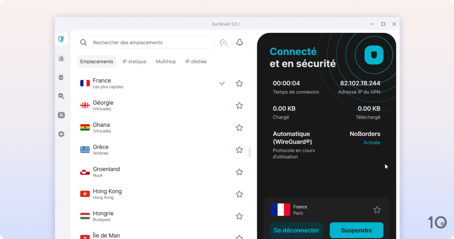Pourquoi c’est important : un chiffrement VPN solide empêche votre FAI de surveiller votre activité de jeu et d’entraver votre connexion. Il masque aussi votre adresse IP, vous protégeant des menaces extérieures.