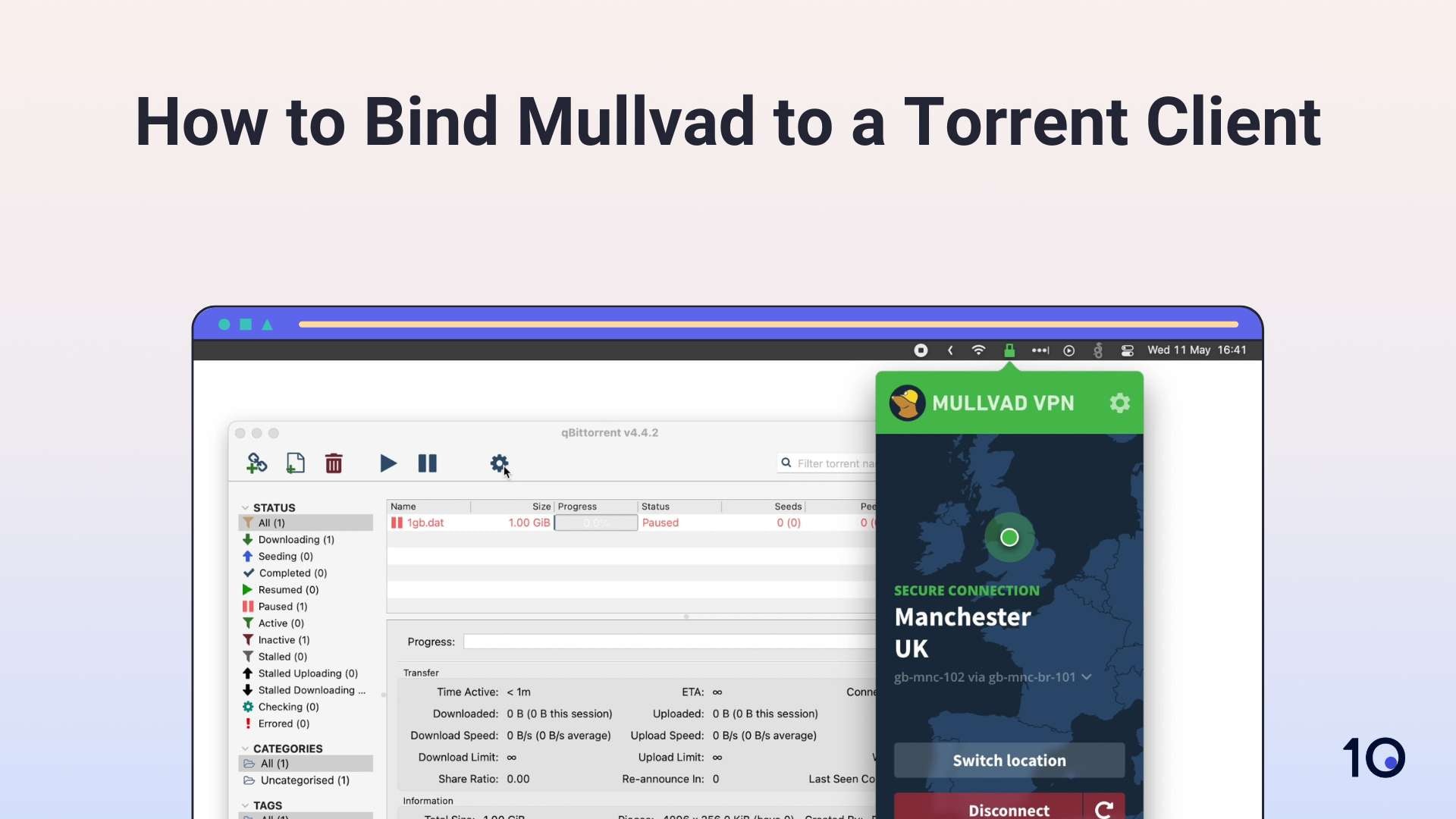 - Your torrent client is now bound to the IP address of the Mullvad server.
