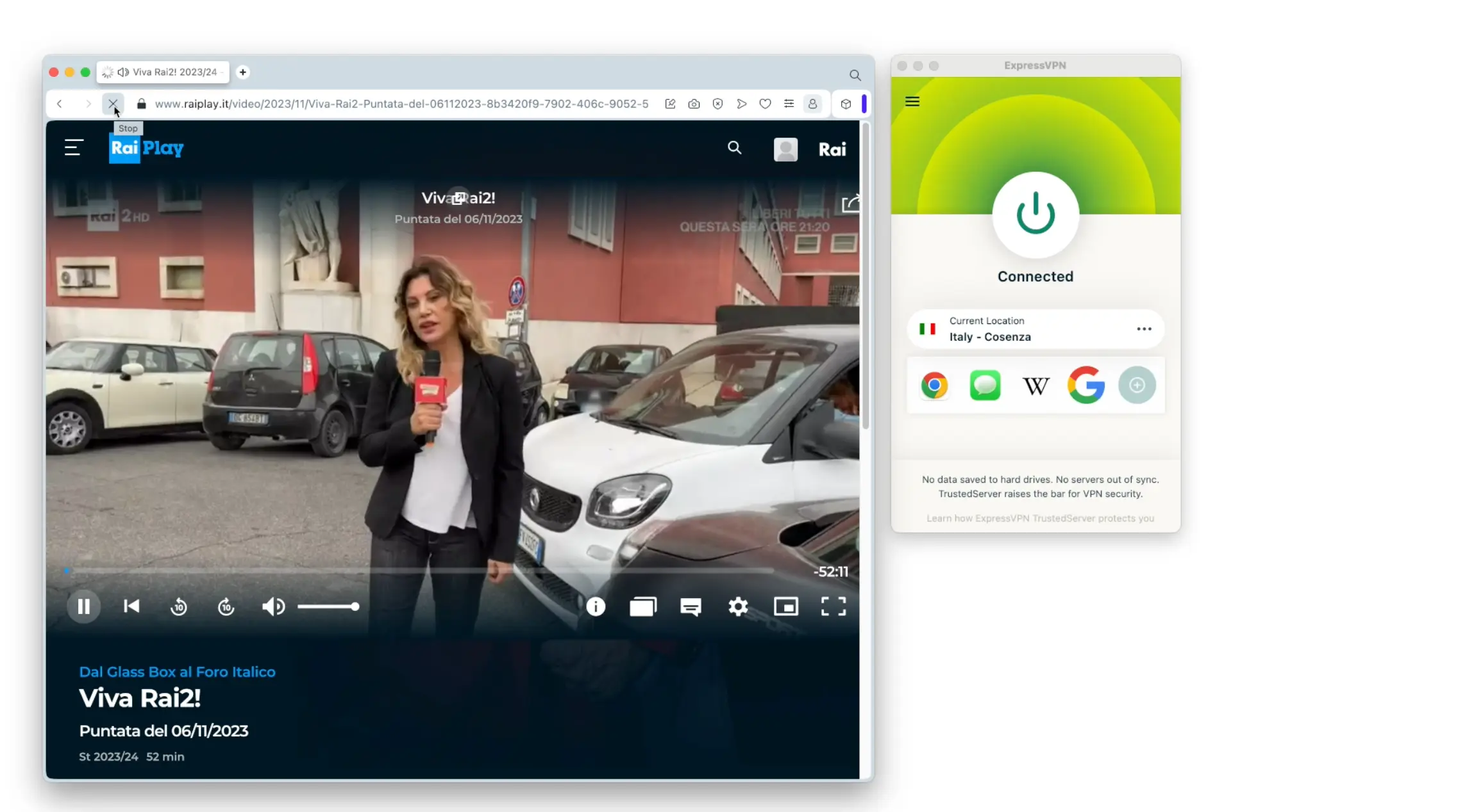 Abbonati a una VPN con server in Italia. Ti consigliamo ExpressVPN, in quanto è velocissima, facilissima da usare e ha funzionato con RaiPlay ad ogni tentativo.