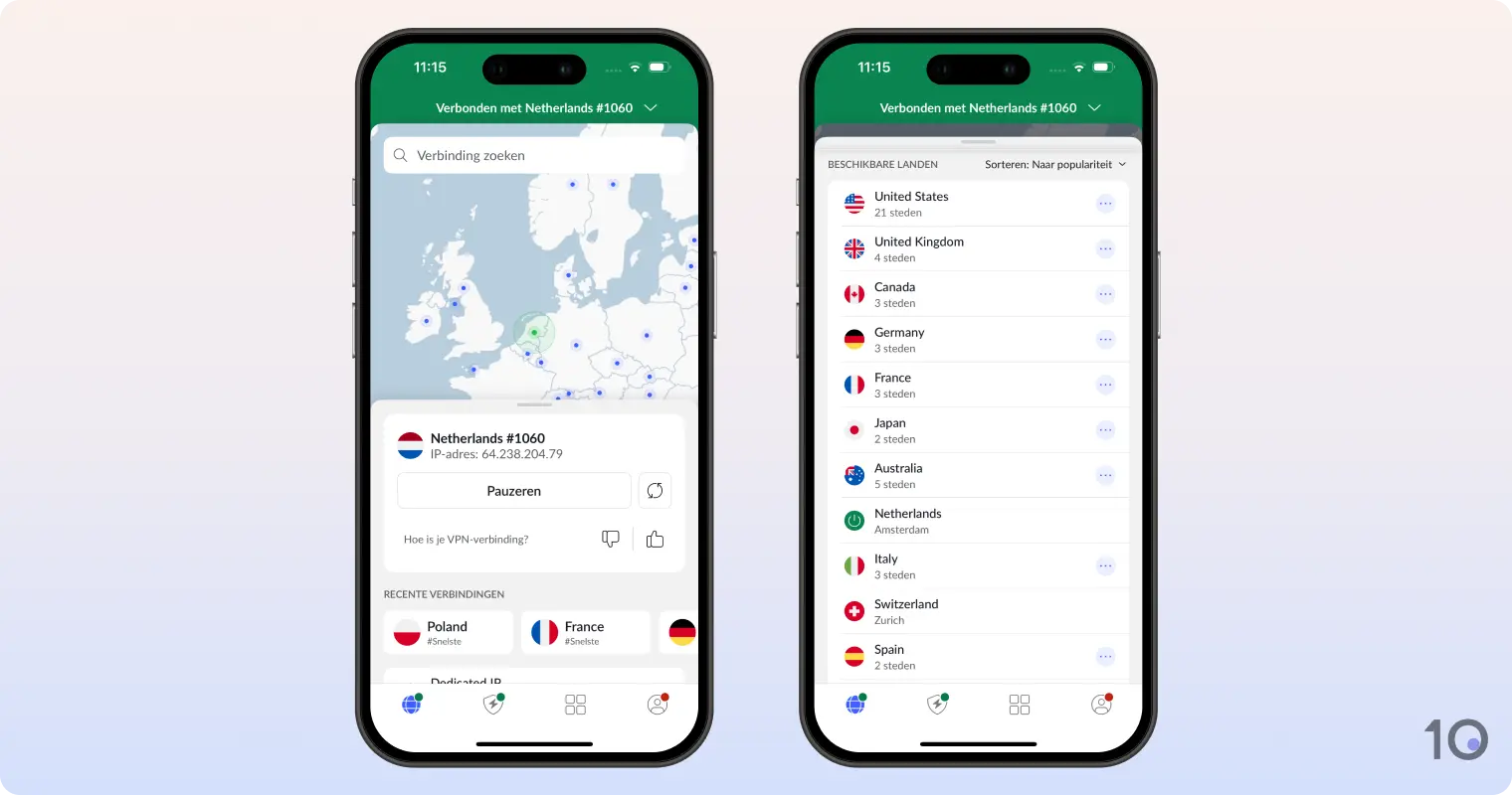 Waarom het belangrijk is: Hoe meer serverlocaties een VPN biedt, hoe meer mogelijkheden je hebt om een IP-adres uit verschillende landen te verkrijgen, geo-restricties te omzeilen en verbinding te maken met een server die dichter bij je fysieke locatie ligt.
